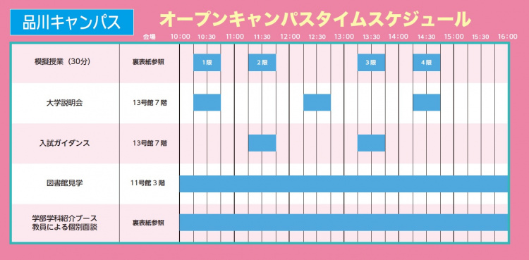※熊谷キャンパスのタイムスケジュールは2/18(水)公開予定です。