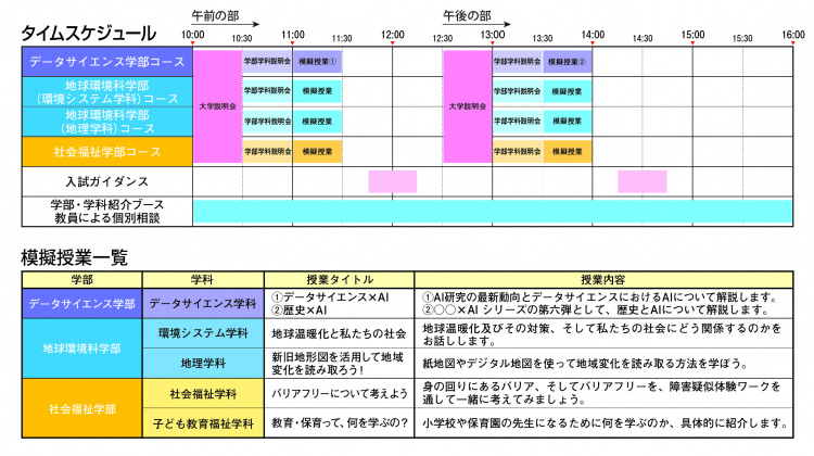 熊谷キャンパス開催:データサイエンス学部・地球環境科学部・社会福祉学部